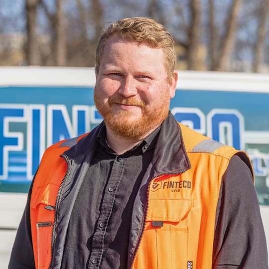 Vastaan kunnossapito- ja huolto-osastosta. Fintecossa parasta asiakkaan kannalta on palveluiden kokonaisvaltaisuus. Pystymme palvelemaan monipuolisesti ja tavoitamme ison joukon asiakkaita. Meillä on hyvä ja avoin työporukka, kaikkien kanssa tullaan toimeen. Silloin töiden tekeminenkin on mukavaa.